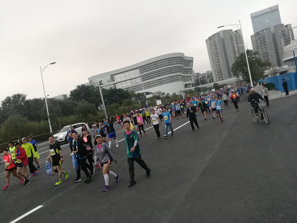 當(dāng)天早上六點(diǎn)半,報(bào)名參加歡樂(lè)跑以及半程馬拉松的23位同事整裝待發(fā),一起乘坐中巴前往黃埔體育館。盡管當(dāng)天氣溫較前一天有點(diǎn)低,甚至下起了小雨,但是大家依然熱情高漲,一路上有說(shuō)有笑,好不熱鬧。八點(diǎn)整,開(kāi)跑槍聲準(zhǔn)時(shí)響起,場(chǎng)內(nèi)頓時(shí)沸騰起來(lái)。